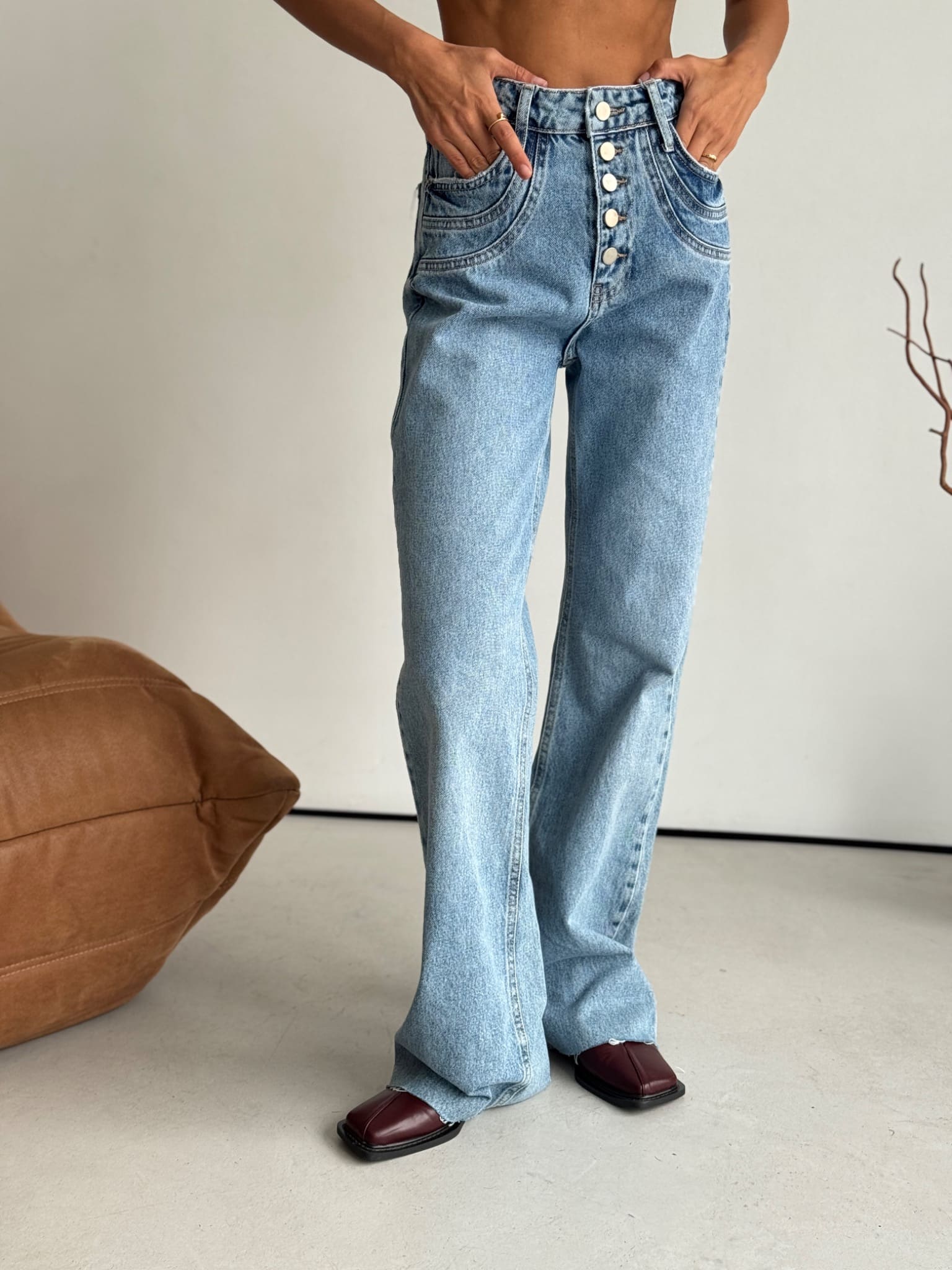 + Free ShippingHigh-waisted wide leg jeans crafted from classic blue denim for a timeless, flattering fit.