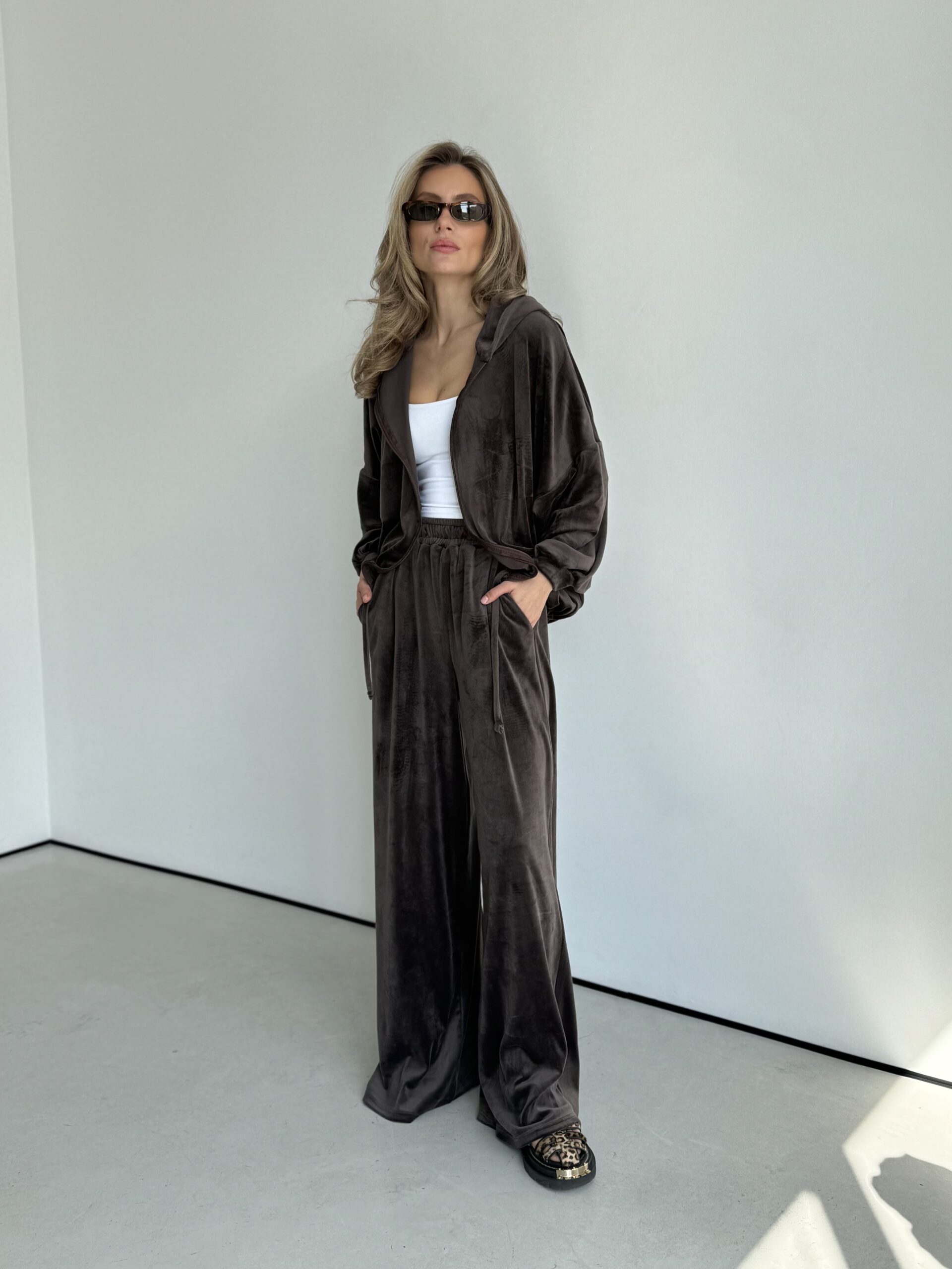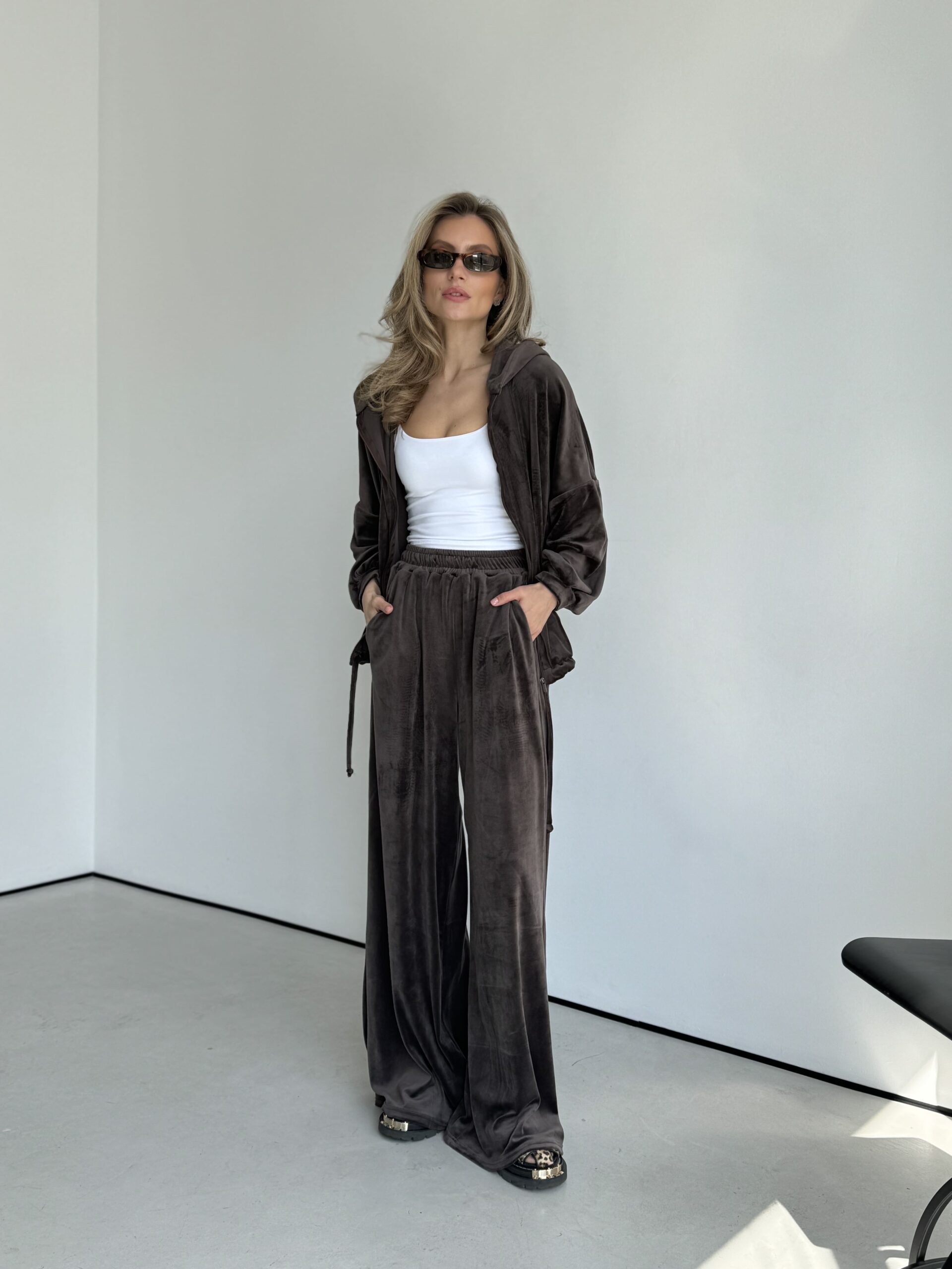 SOFT-TOUCH HOODED JACKET AND WIDE-LEG PANTS SET